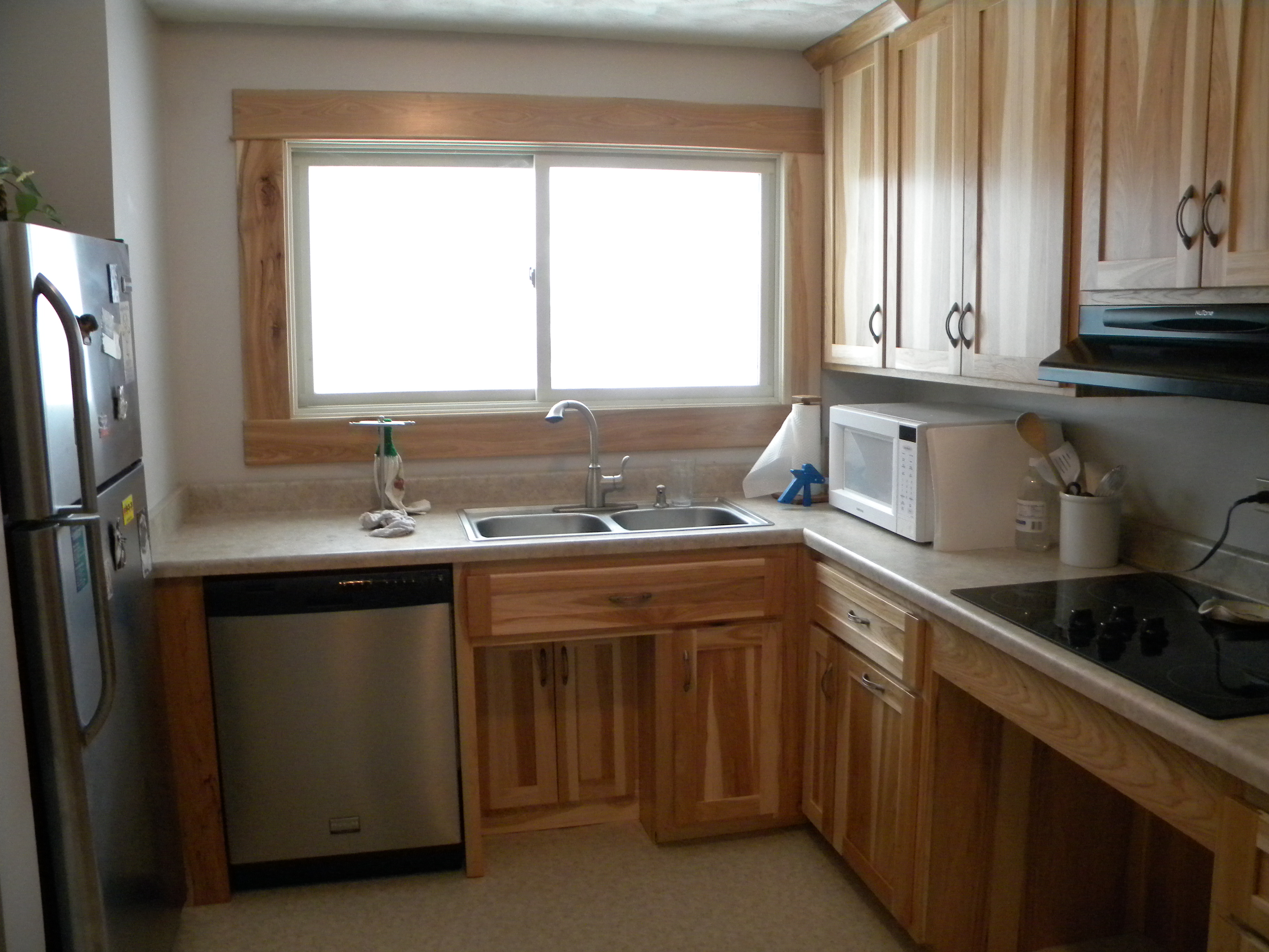 Click on photos to enlarge! Photos show the kitchen before, during and after remodel.
